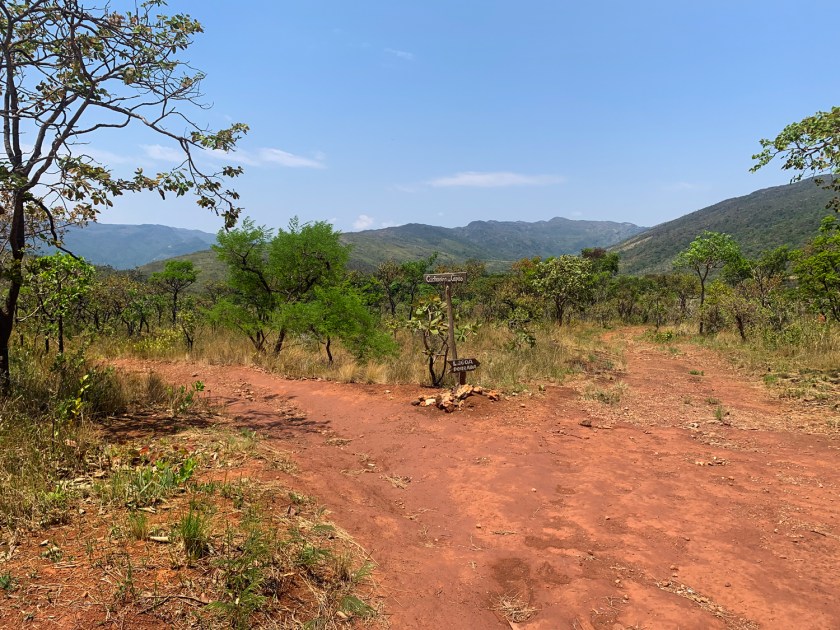 Cerca de 500 metros depois desse ponto, chega-se a uma bifurcação que é preciso prestar atenção, já que a placa pode passar despercebida. Ali, é preciso pegar o caminho da esquerda, deixando para trás a larga estrada de terra (e pedras) que vinha sendo percorrida desde o início da caminhada.