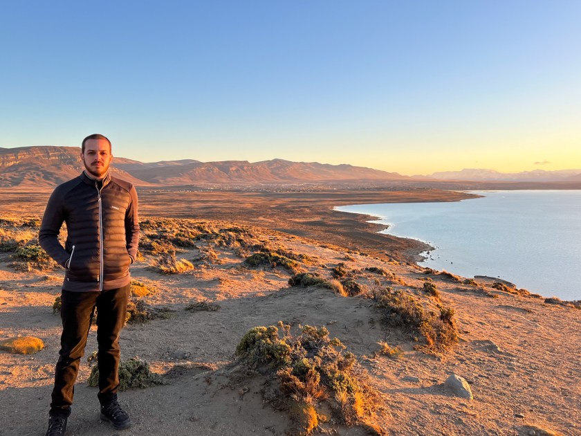 Foram cerca de 9 km até a primeira parada – um mirante com vista privilegiada do Lago Argentino, um dos maiores do país, com superfície de 1415 km2 e profundidade média de 150 m, alcançando centenas de metros nos pontos mais profundos. Esse é o maior e mais austral lago da Patagônia Argentina. Ali desaguam vários glaciares que descem pelas montanhas da Cordilheira dos Andes, principais atrativos da região. Também é possível ver a cidade ao longe.