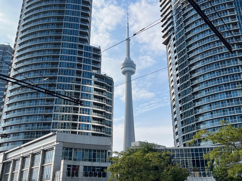Com pouco mais de 553 metros de altura, essa é uma das estruturas mais altas do mundo e foi, por mais de três décadas, a mais alta já construída pelo ser humano. Os mirantes estão distribuídos em diferentes níveis, sendo o principal a cerca de 346 metros de altura. Em dias de boa visibilidade, é possível enxergar até aproximadamente 160 quilômetros de distância, incluindo o Lago Ontário e regiões dos Estados Unidos.