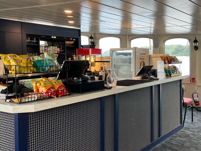 O espaço interno é uma boa alternativa em dias frios, chuvosos ou muito ventosos, sem grande comprometimento da experiência visual, por ter janelas grandes. Nessa área há uma pequena lanchonete e banheiros. Os assentos são simples, mas suficientes para a duração do passeio, e muitos visitantes optam por ficar em pé em diversos momentos para aproveitar melhor os ângulos e fazer fotos e vídeos.