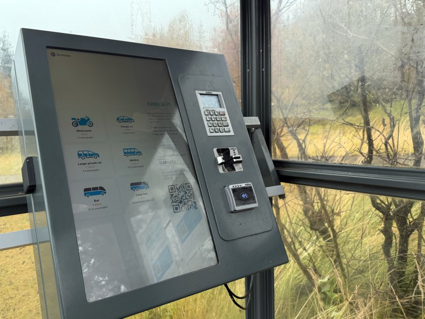 Ao optar por alugar um carro, é possível organizar o seu próprio roteiro. O parque possui vários estacionamentos. Eu parei no P5, a área que concentra vários pontos de interesse próximos. Na alta temporada, ele pode ficar lotado. Outro ponto recomendado é o P3. O uso é pago, com cobrança feita por veículo e válida para o dia inteiro. O pagamento do estacionamento pode ser feito online ou nos totens disponíveis e vale para todas as paradas do parque.
