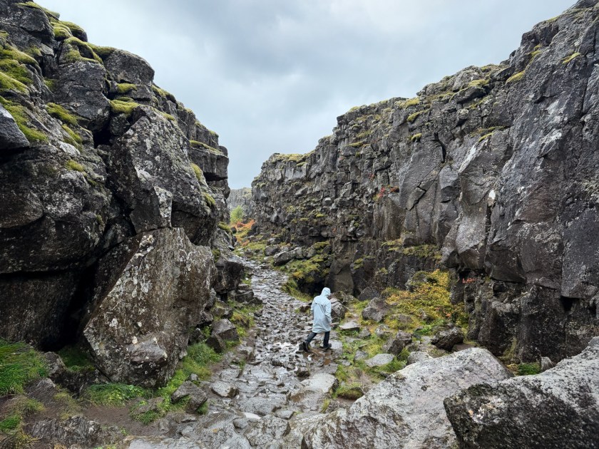 Para fazer a caminhada completa pelo Flekaskilin, são percorridos cerca de 2 km de comprimento somente de ida. O nome pode ser traduzido como “separação das placas”, já que ali é possível observar claramente os dois lados. Trata-se de um corredor natural formado por rochas, fendas e paredões, criado ao longo de milhares de anos pelo afastamento gradual dos continentes.