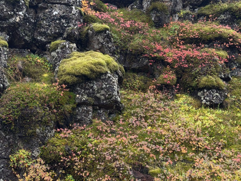 A vegetação é composta principalmente por musgos, gramíneas e arbustos de pequeno porte, adaptados ao clima frio e ao solo vulcânico. Árvores são raras, refletindo as condições naturais da região. Os musgos cobrem rochas e campos, criando texturas e tons que variam conforme a estação. Na primavera e no verão, pequenas flores silvestres aparecem em pontos específicos. Essa vegetação sensível é protegida, por isso é importante caminhar somente nas trilhas demarcadas.