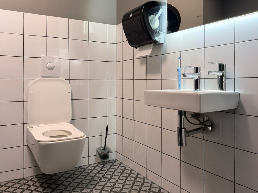Os banheiros coletivos são bem dimensionados para o número de hóspedes, não havendo grandes filas de espera mesmo nos momentos de maior movimentação. A estrutura inclui pias amplas, espelhos grandes e espaço para acomodar itens pessoais na área aberta. Para quem vai usar o sanitário, as cabines individuais também possuem boa estrutura. Papel higiênico e sabonete costumam ser disponibilizados.