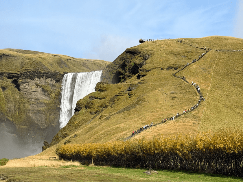 Essa distância também permite fazer um passeio bate-volta a partir da capital do país. Uma excelente opção para quem não quer dirigir é reservar o tour guiado pelas Cascatas Seljalandsfoss e Skógafoss + Glaciar Sólheimajökull, que combina visitas aos pontos turísticos mais famosos da costa sul em um único dia. Este passeio inclui paradas em uma praia de areia preta, cachoeiras e glaciar. Ou seja, abrange uma boa variedade de atrativos em um único dia.