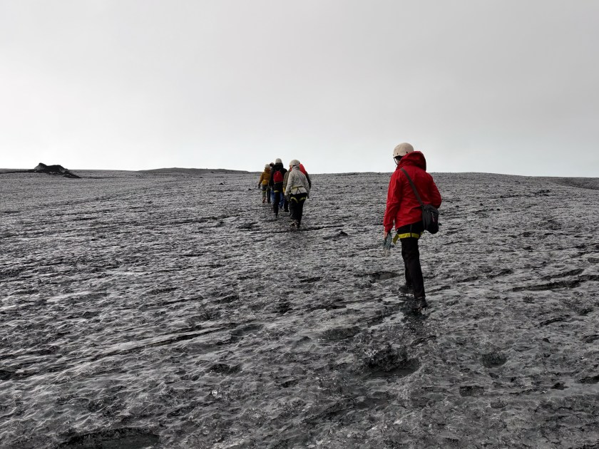 Geralmente, são cerca de 2 km de caminhada na ida, totalizando 4 km contando com a volta, sobre uma das maiores massas de gelo da Europa. Essa distância pode variar bastante, pois a cada ano surgem novas cavernas e outras são fechadas. É um trajeto um pouco cansativo, com a inclinação do terreno e a pisada forte para garantir mais estabilidade. Mas também fascinante, tanto pela paisagem quanto pelas informações. Durante o trajeto, o guia explica como o glaciar se forma e se movimenta, além do impacto das mudanças climáticas.