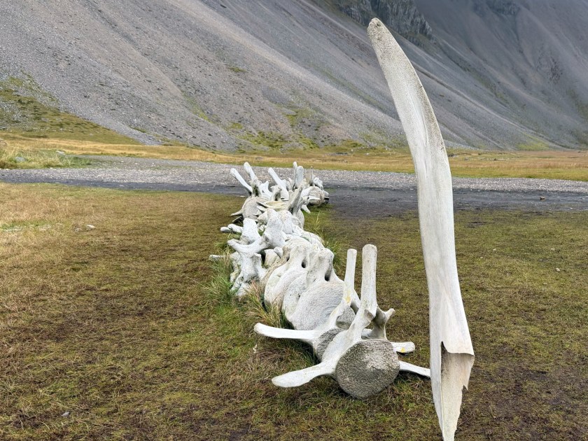 Entre as atrações curiosas da vila, está a ossada de baleia exposta na área externa. Trata-se de um esqueleto real, utilizado como elemento decorativo e educativo. Ele chama a atenção pelo tamanho e pela preservação, ajudando a reforçar a ligação da Islândia com o mar e a pesca. É um ponto que mistura natureza e história. Também rende boas fotos, especialmente com o fundo da montanha.