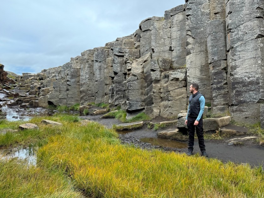 Um pouco mais à frente, as colunas de basalto ficam mais evidentes. Elas são resultado da atividade vulcânica que moldou grande parte da Islândia. Após uma erupção, a rocha se contrai durante o resfriamento e cria fraturas geométricas. Esse processo gera estruturas verticais com formatos geralmente hexagonais. Com o passar do tempo, a erosão expõe essas colunas, criando paisagens impressionantes. Fenômenos semelhantes podem ser vistos em outros lugares do país, como na praia de Reynisfjara. No entanto, aqui as colunas são particularmente altas e densas. Isso cria paredes naturais que lembram uma enorme catedral de pedra.