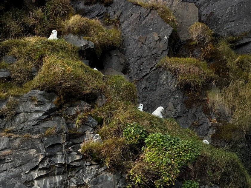 Além da área próxima ao estacionamento, a paisagem da Fauskasandur também pode ser observada a partir de diferentes pontos ao longo dos penhascos. Pequenos caminhos formados pelo próprio terreno levam a áreas onde é possível ver a praia de cima, revelando a forma da baía e as tonalidades do oceano. Esses mirantes naturais não possuem grades ou proteção, por isso é importante caminhar com atenção e manter distância da borda. A combinação de rochas escuras, água azul profunda e montanhas cria um cenário típico da Islândia.