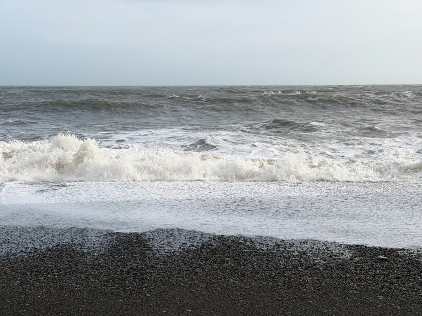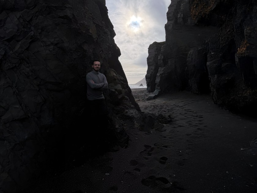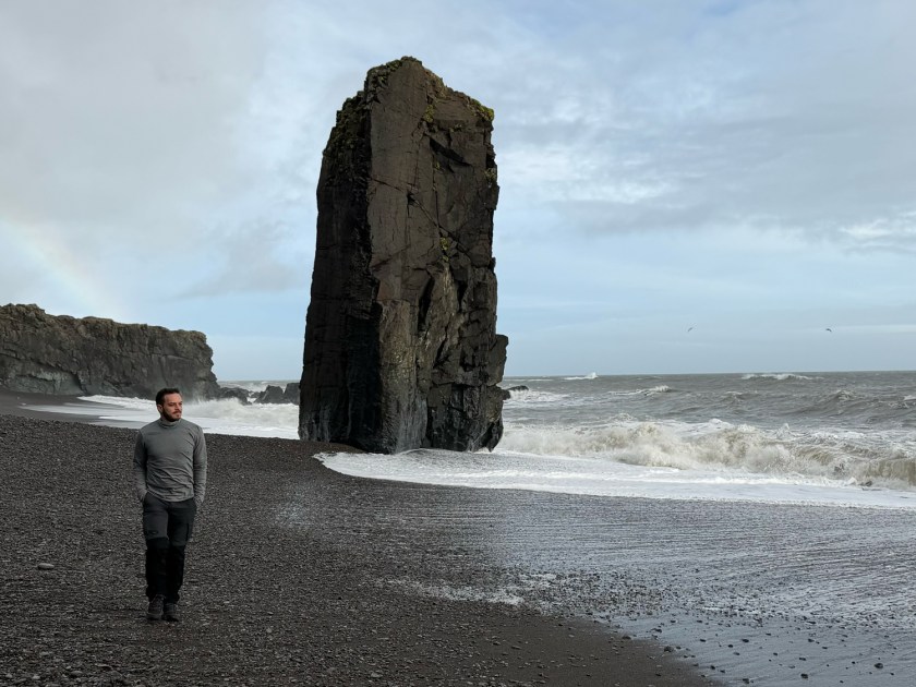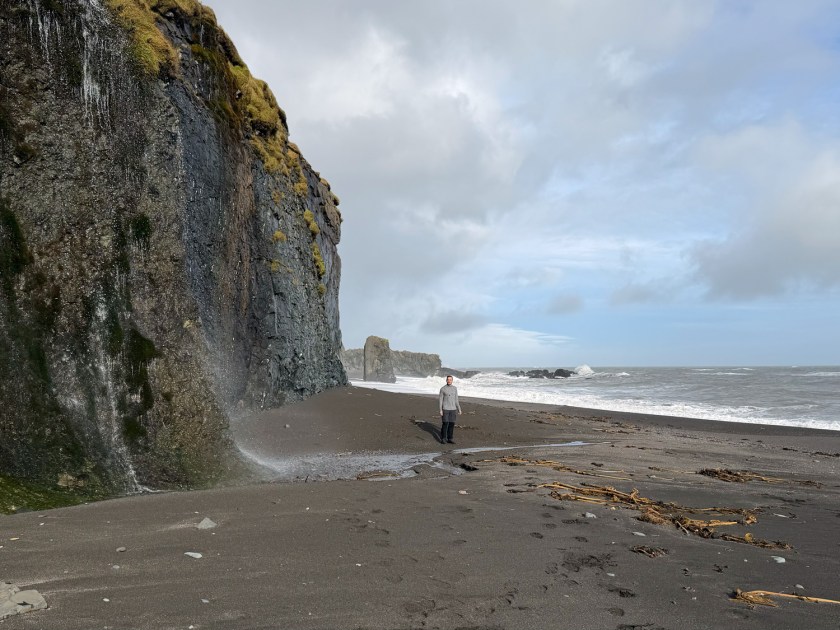 Em um dos lados da baía é possível notar uma pequena queda d’água escorrendo pelo penhasco próximo da praia. Essa cascata é formada pelo escoamento de água proveniente das montanhas acima, especialmente após períodos de chuva ou durante o degelo. Embora seja discreta em comparação com as famosas cachoeiras islandesas, ela contribui para o charme da paisagem local.