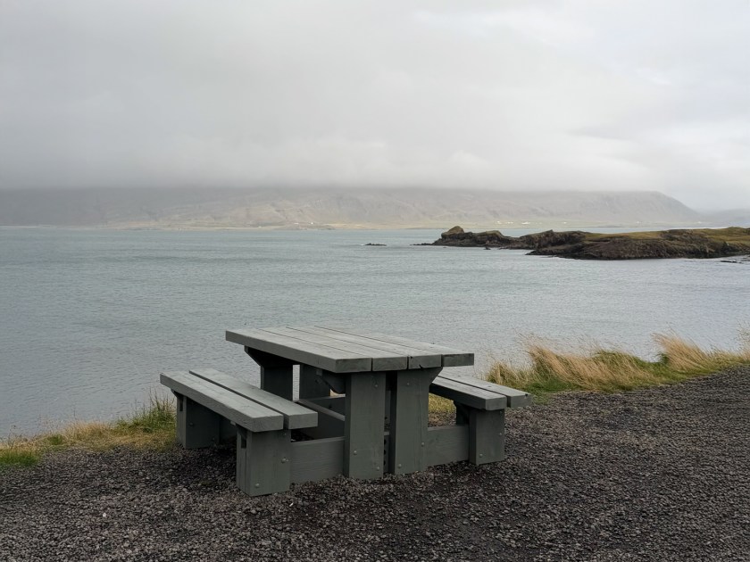 Como o local não possui serviços ou comércio, é recomendável levar água e algum lanche caso a ideia seja passar um pouco mais de tempo explorando a área. Perto do estacionamento há uma mesa de piquenique instalada em um pequeno ponto elevado com vista para a baía. O mar do Atlântico Norte se estende no horizonte, com montanhas ao fundo. Em dias de clima estável, é um ótimo lugar para fazer uma pausa durante a viagem pela estrada, esticar as pernas e apreciar a paisagem com calma.