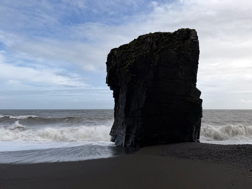 Em um dos lados da baía é possível notar uma pequena queda d’água escorrendo pelo penhasco próximo da praia. Essa cascata é formada pelo escoamento de água proveniente das montanhas acima, especialmente após períodos de chuva ou durante o degelo. Embora seja discreta em comparação com as famosas cachoeiras islandesas, ela contribui para o charme da paisagem local.